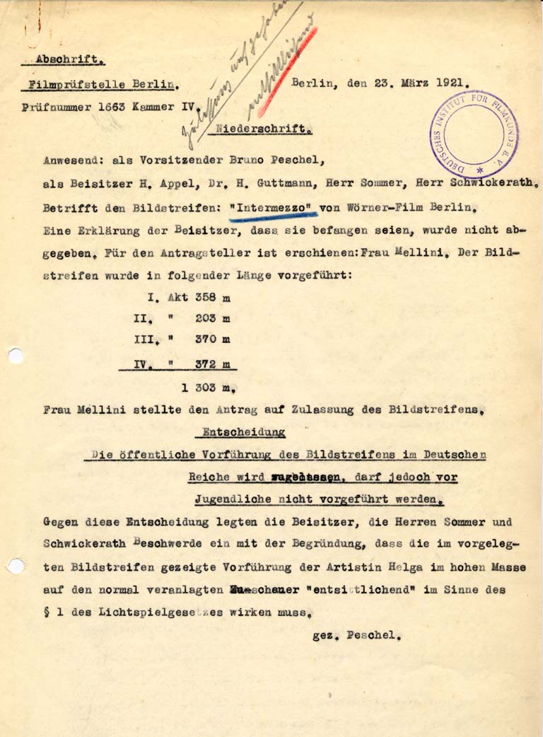 Popis: The film "Intermezzo" was permitted by the censorship office in Berlin for adults 18 years of age or older.