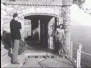 Bagnanti nelle acque del golfo di Rapallo. Sullo sfondo la piazza IV Novembre con il monumento celebrativo. Campo lungo
