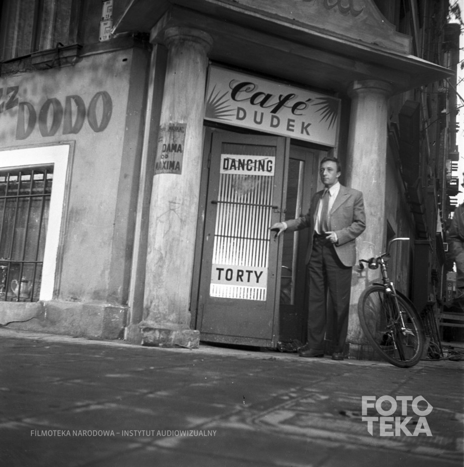 Trefwoorden: kawiarnia / drzwi / rower / ulica / dancing / Director: Munk Andrzej / Kobiela Bogumił