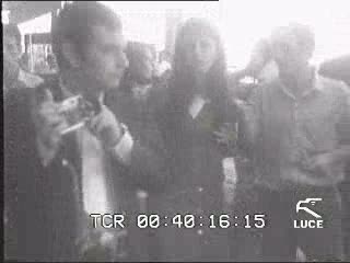 Franca Bettoja, Sylva Koscina, Cosetta Greco e Luisa della Noce salutano dalla scaletta dell'aereo prima di partire per il sud Africa - piano americano